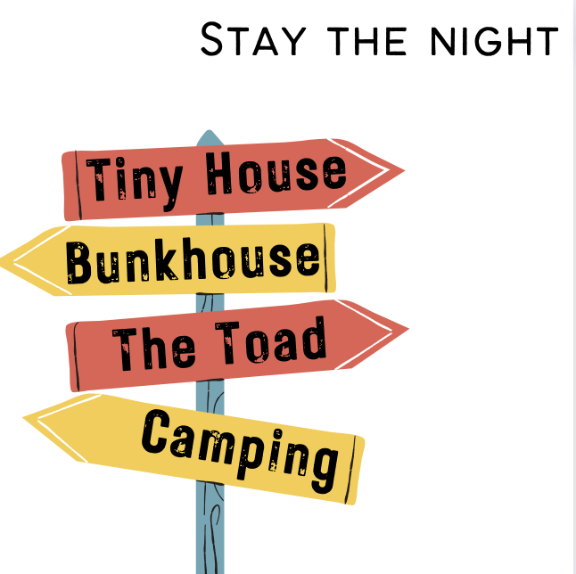 A tiny house, vintage trailer, bunkhouse, and campsites are available year round and are subject to availability. The Oasis at Rootstock Retreat, our wood-fired bathhouse and elemental healing sanctuary, are often available to our guests and requires 24-48 hours notice to book.
